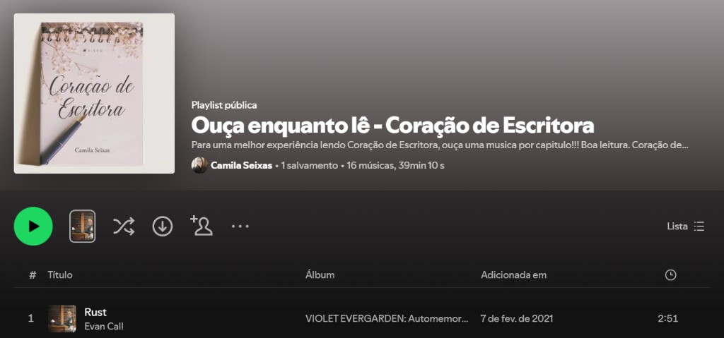 Então, se for ler Coração de Escritora, experimente ouvir com as músicas dessa playlist clicando aqui.
